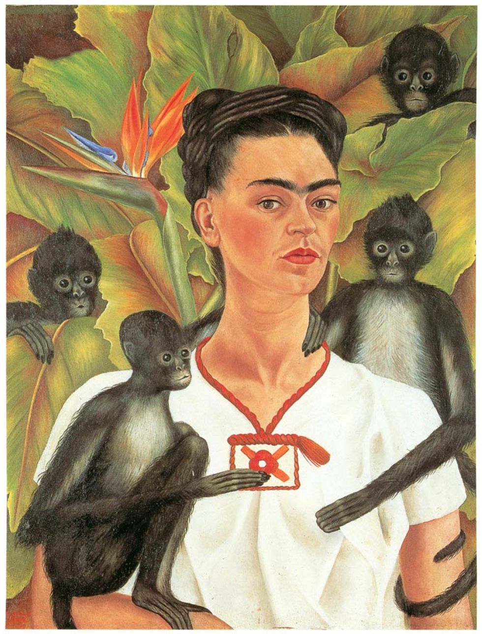 Self-portrait with Monkeys, Frida Kahlo, 1943, via 600dpi Public Domain Museum.